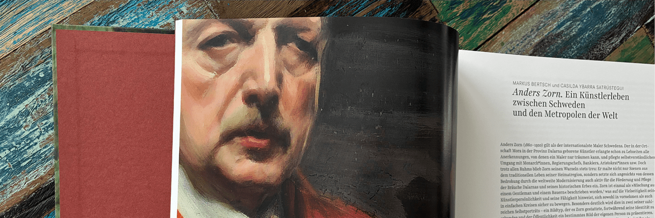 Abb.: Ausstellungskatalog der Hamburger Kunsthalle, Hirmer Verlag, mit Ausschnitt aus dem Gemälde »Selbstporträt in Rot«, 1915, ©Zornmuseet, Mora