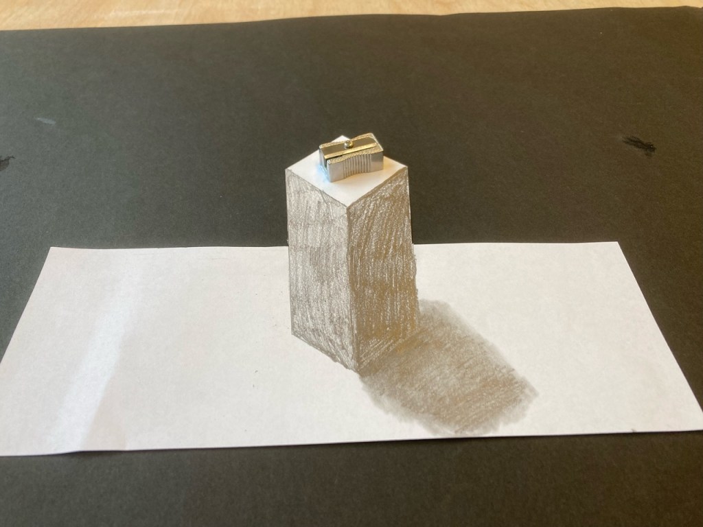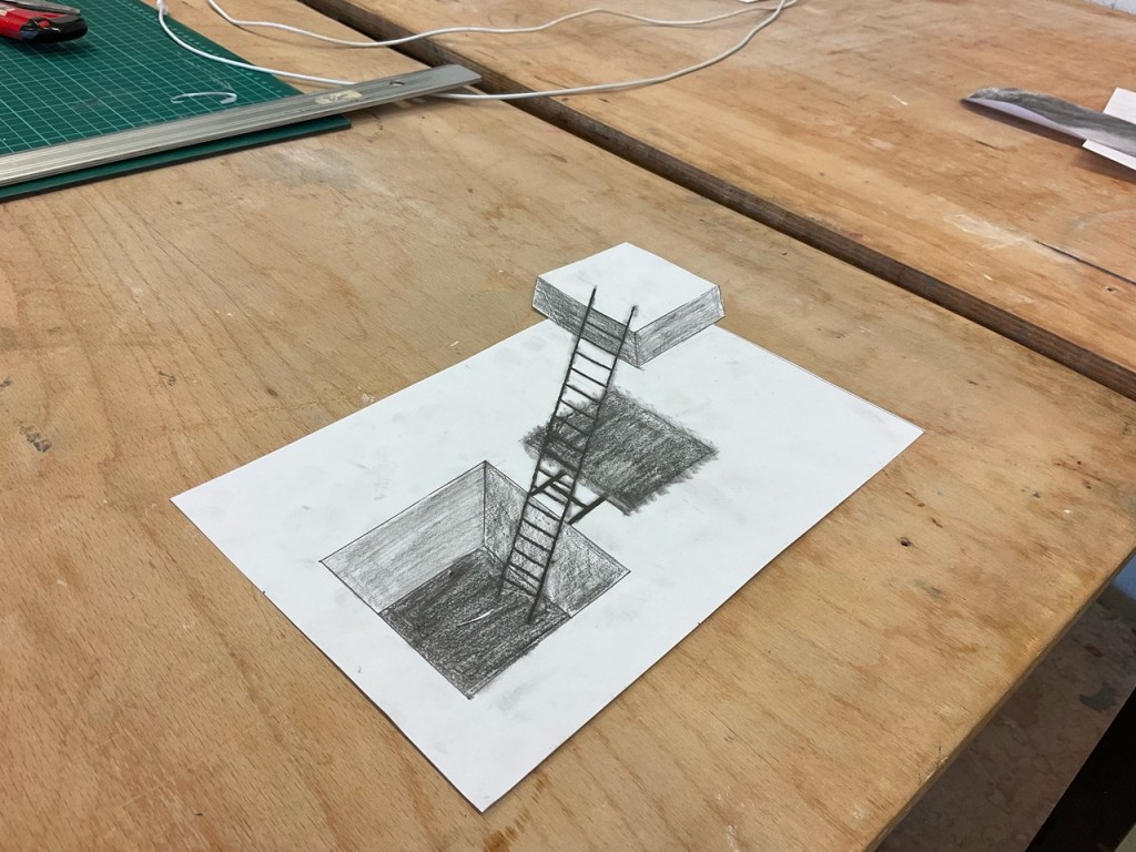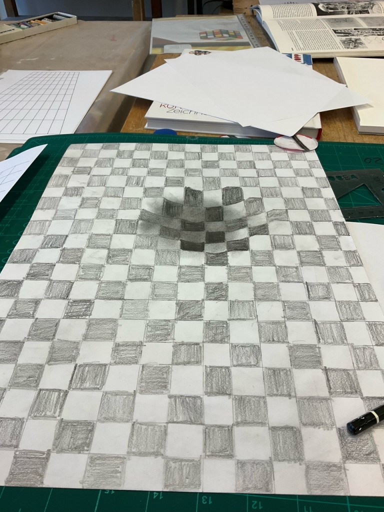 Hast Du schon mal im Internet einen dieser verblüffenden Filme gesehen, in denen ein Künstler eine perfekte räumliche Illusion zeichnet? Ein Glas, über das ein Bleistift rollt, obwohl es doch dort „steht“? Ein Loch im Tisch, über das eine Murmel problemlos hinwegrollt? Leitern, die in die Höhe führen und trotzdem ganz flach sind? Wir lernen mit einfachen Methoden, räumlich zu zeichnen, die Kameraperspektive in der Zeichnung mit einzuplanen und erzeugen so perfekte Illusionen, mit denen wir dann Andere zum Staunen bringen!