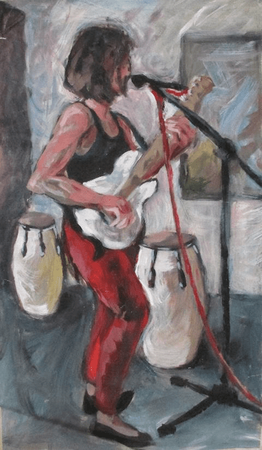 Bassistin | Acryl auf Packpapier, 110 x 65 cm, 1992