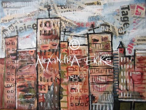 STADTGESPRÄCH | Acrylfarbe & Collage auf Keilrahmen, 30 x 40 cm, 2005