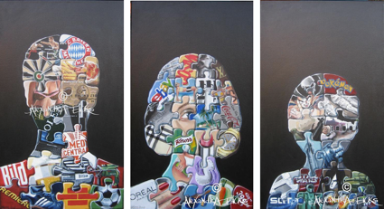 VATER, MUTTER, KIND | Triptychon, Acrylfarbe auf Keilrahmen, je 60 x 30 cm, 2007