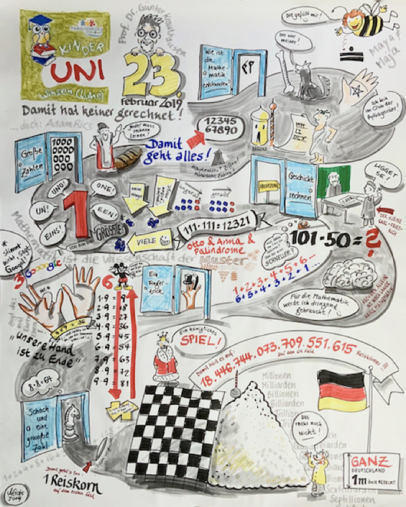 Sehr beeindruckend, wie synchron während meines Vortrags aus einem großformatigen leeren Blatt dieses Kunstwerk entstand. Alle zentralen Aspekte sind eingeflossen und zugleich verständlich und adressatengerecht dargestellt. Ein lebendiges ›Protokoll‹ des Vortrags.