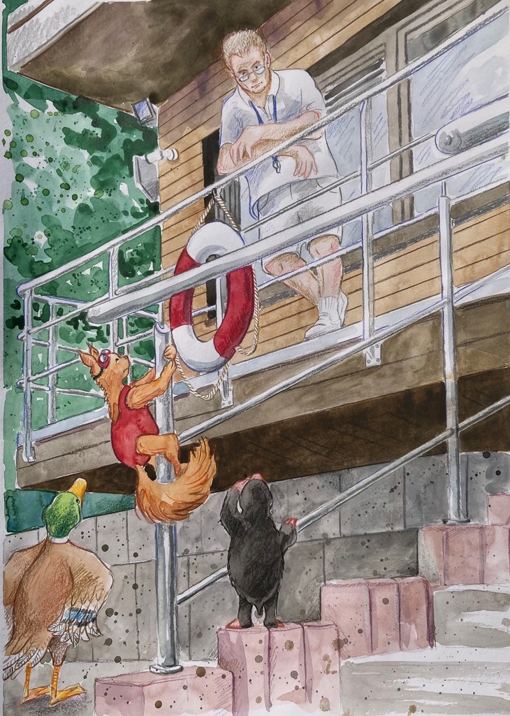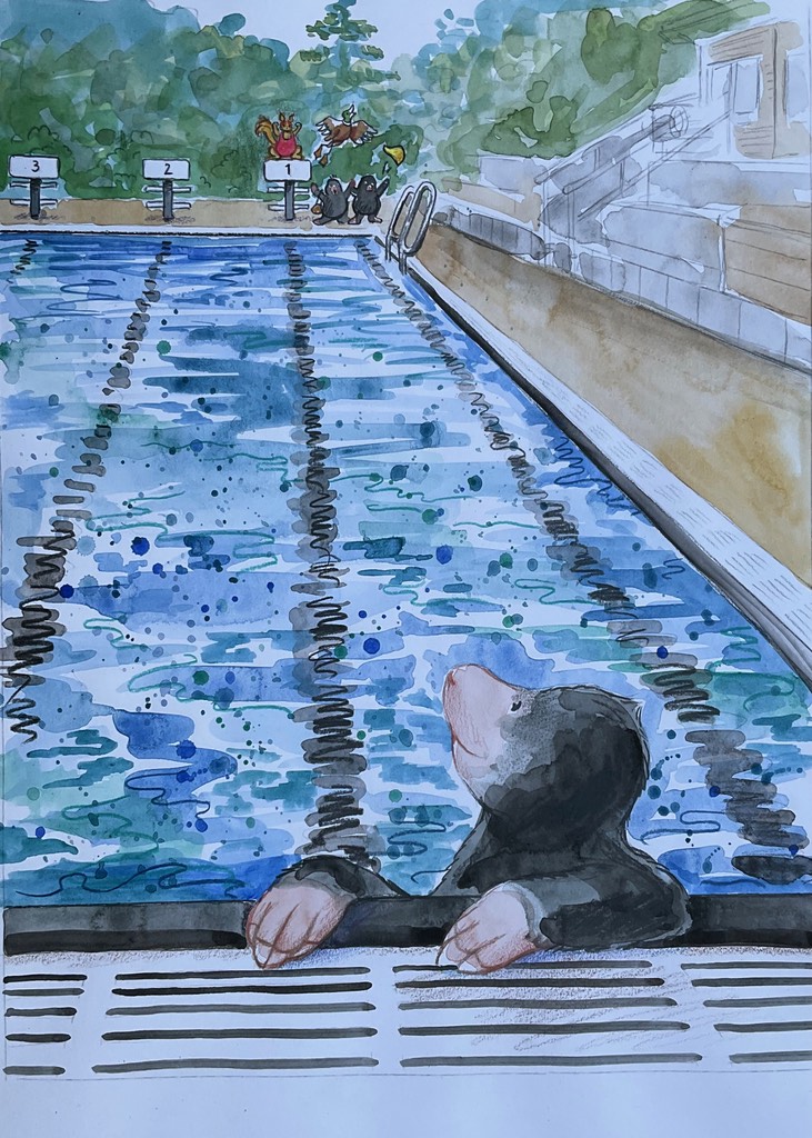 Die folgende Galerie zeigt einige Beispiele meiner Illustrationen im Kinderbuch Fiete Mullewapp lernt schwimmen. Es handelt sich sowohl um schwarz/weiße als auch um aufwendigere Farbillustrationen, von kleinteiligen Details bis zu ganzseitigen Darstellungen.