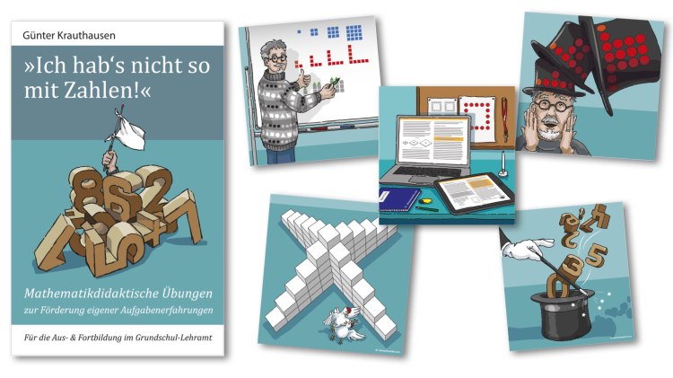[1-3] Zu diesem digitalen Buch das Mathematikdidaktikers Prof. Dr. Günter Krauthausen von der Uni Hamburg habe ich zahlreiche Illustrationen beigesteuert, die z. T. erst analog gezeichnet und im Anschluss digital weiterbearbeitet wurden. Von farbigen Kapitel-Bildern über Professoren-Karikaturen und Vignetten ist bis hin zu präzisen geometrischen Konstruktionen alles dabei. In der Auseinandersetzung mit der Thematik habe ich die Ideen für viele um-die-Ecke-gedachte Umsetzungen im Bild entwickelt.