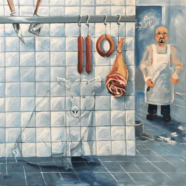 Diese Serie wurde ursprünglich für einen veganen Restaurations-Betrieb geschaffen, in dessen Gasträumen die Bilderserie ausgehängt wurde, um die genannte Botschaft mit einem Augenzwinkern zu transportieren.