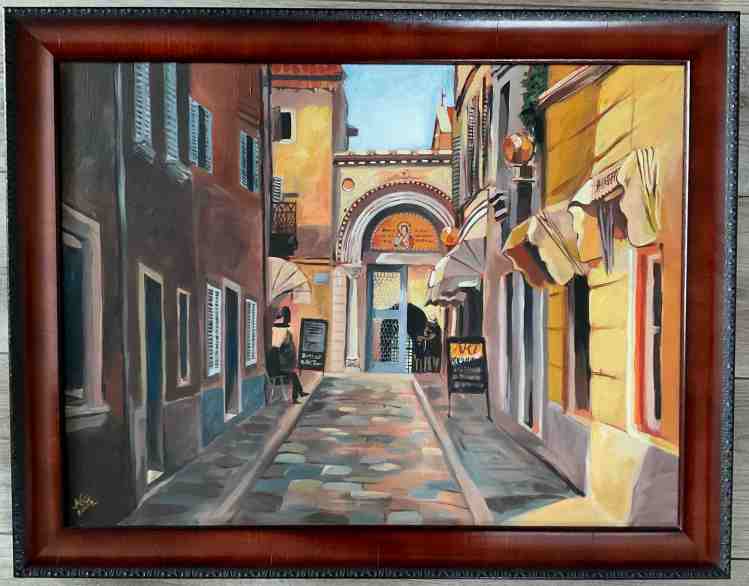 STRAßE IN POREC – KROATIEN | Acryl auf Leinen, 48 x 64, professionell gerahmt | Preis: 420,00 €