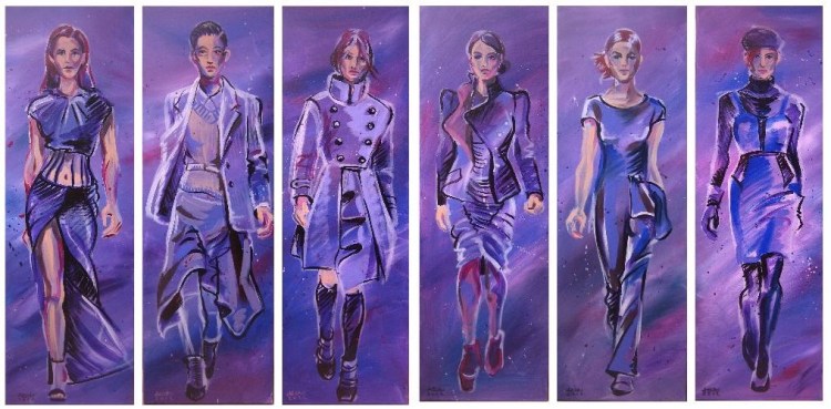 FASHION I-VI | Acryl auf Keilrahmen, je 90 x 30 | komplett: 480,00 €; 4 Stück: 340,00 €; 2 Stück: 180,00 €