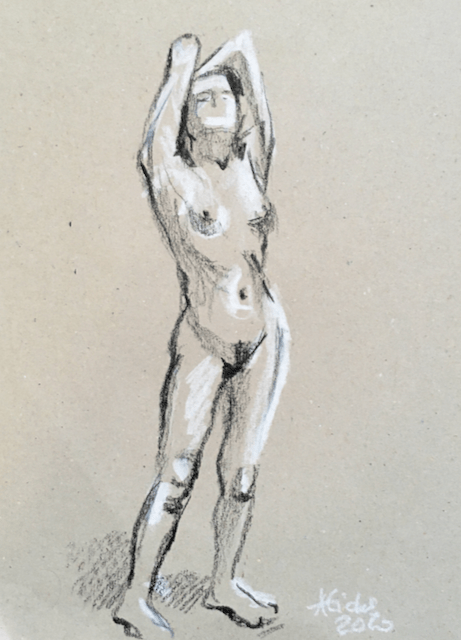 STEHENDER AKT: Kreide auf Packpapier, 30 x 20 cm, 2020