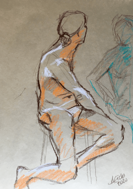 Die Anatomie des Menschen zählt zur klassischen Ausbildung jeder Künstlerin. Den Bau des Skeletts, der Muskulatur und der Proportionen wiedergeben zu können ist das eine – mich reizt darüber hinaus allerdings der Ausdruck, der sich in der Pose des jeweiligen Modells widerspiegelt. Hier versuche ich, nicht nur das Äußere, sondern auch das Innere des Menschen einzufangen.