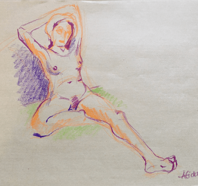 WEIBLICHER AKT – SEKUNDÄRFARBIG: Ölkreiden auf Packpapier, 40 x 30 cm, 2020
