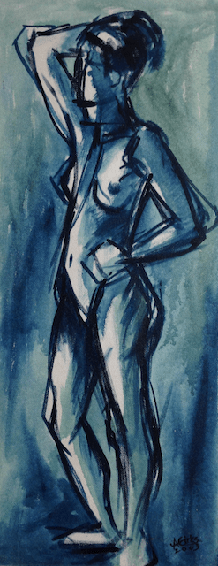 BLAUER KLUGE – Aquarell auf Büttenpapier, 70 x 50 cm, 1990