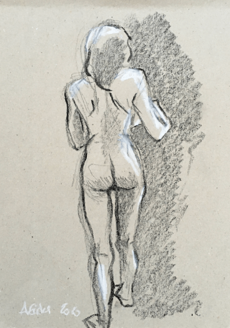 Rücken Akt: Kreide auf Packpapier, 30 x 20 cm, 2020