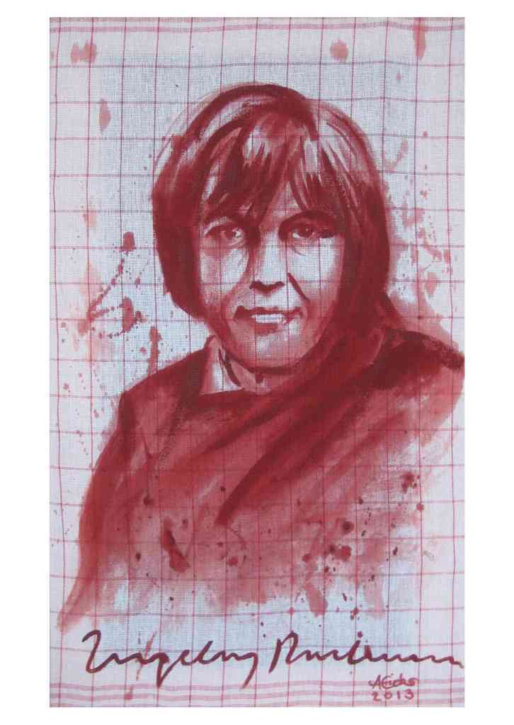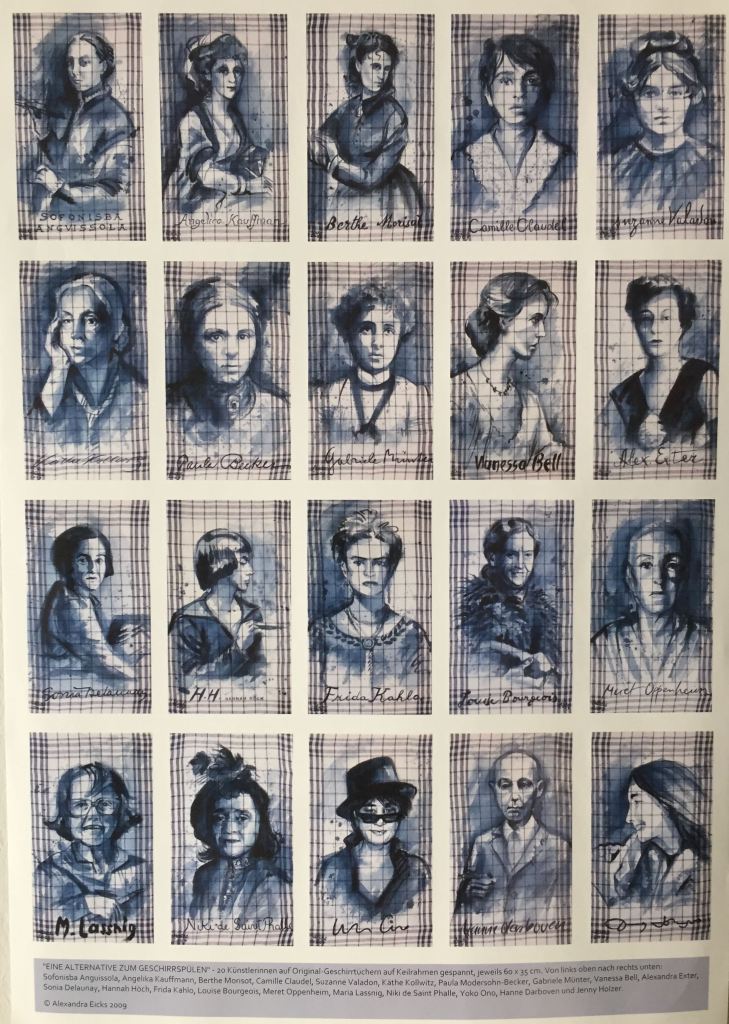 [1-3] Das große dreiteilige Œuvre »Eine Alternative zum Geschirrspülen« eignet sich mit seiner jeweils 2 x 2,5 Meter-Hängung nicht unbedingt für jede Wand. Aber vielleicht können ja auch die Poster-Varianten erfreuen. Sie präsentieren alle jeweils 20 Persönlichkeiten der Serien im Format DIN A3 – Schriftstellerinnen, Bildende Künstlerinnen, Komponistinnen. Ausgewählte Einzelportraits gibt es auch als Kunst-Postkarte (s. u.).