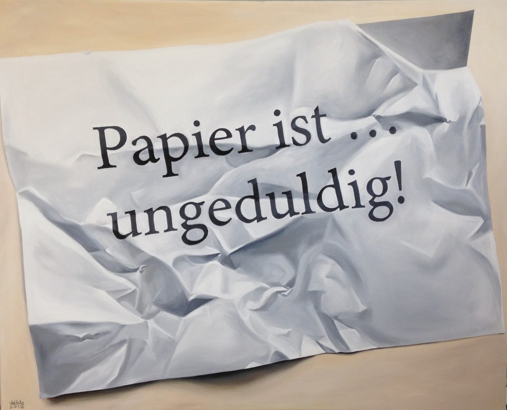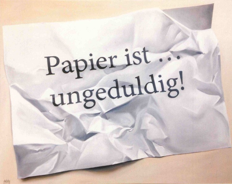 [4] Im Original ein Ölgemälde (»Papier ist ungeduldig« | 80 x 100 cm), ist das ›ungeduldige Papier‹ auch als DIN A2-Poster erhältlich.