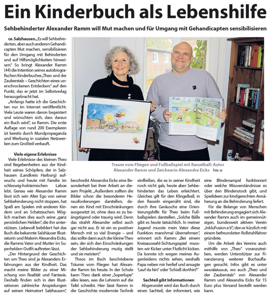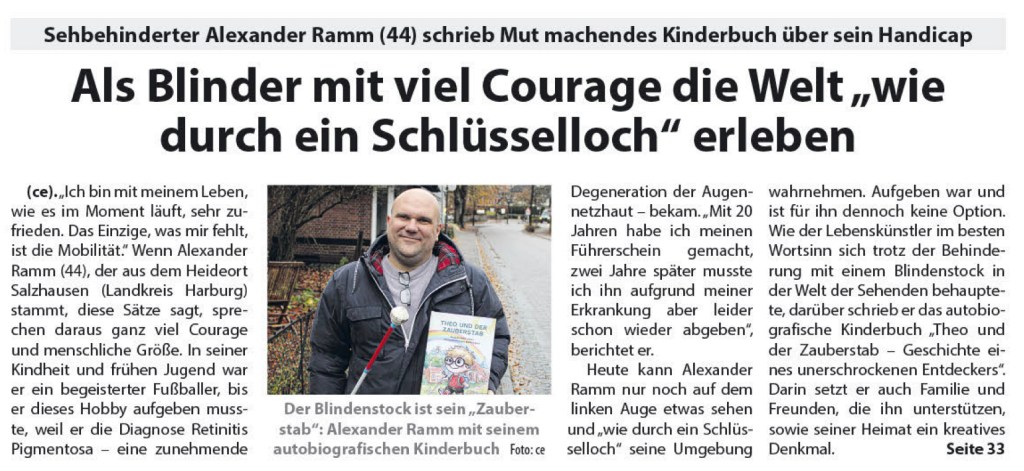 PR Über die Veröffentlichung des Bilderbuchs »Theo und sein Zauberstab« berichtete die Kreiszeitung/Wochenblatt in ihrer Nr. 47 auf den Seiten 1 und 33. Seiten: 1 2 3 4 5 6 7 8 9