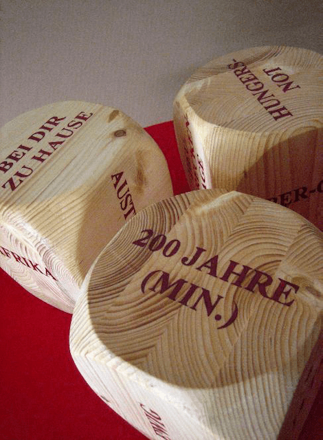 GOTTES WERK & TEUFELS BEITRAG (WIDERLEGUNG EINER THESE EINSTEINS): „Spieltisch“ aus Holz, Filz, Acrylfarbe etc., Höhe ca. 130 cm (Würfel je 16 x 16 cm), 2009