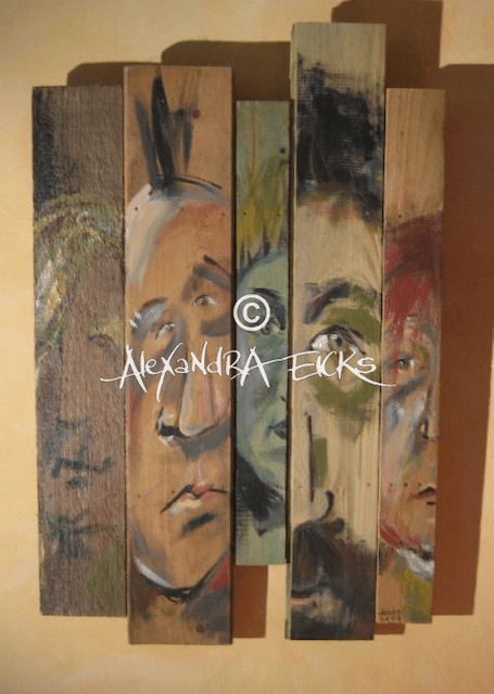 UNGEHOBELT: Acrylfarbe auf verschiedenen Hölzern, ca. 82 x 52 cm, 2008