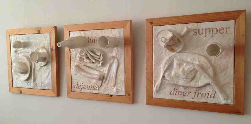BREAKFAST – LUNCH – SUPPER | Mixed Media, Gips, 3 mal 40 x 40 | 2008