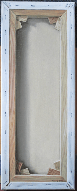 Diese sind malerisch so akribisch ausgestaltet, dass der Blick des Betrachters allzu leicht der Illusion erliegt, tatsächlich die Rückseite eines Leinwand-Bildes vor sich zu haben. Folgerichtig wird die spontane Rezeption, der 1. Blick, zunächst ›das Bild‹ vermissen. Und erst allmählich wird bewusst, dass das fehlende, das verschwundene Bild, das eigentliche Bild ist.