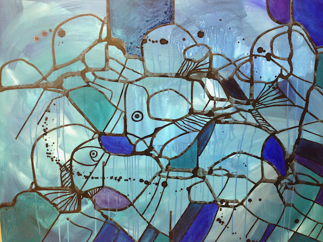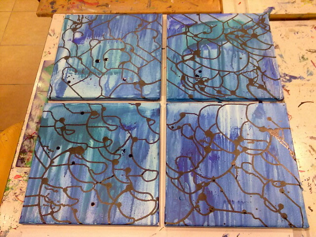 Die in diesem Projekt eingesetzte Technik macht sich die wunderbaren Fließeigenschaften und Wasserfestigkeit der Chinatusche zunutze. Diese wird reichlich auf den Bildträger getropft. Durch mehr oder weniger zufallsgesteuertes Kippeln und Drehen zerfließt die Tusche und ›knüpft‹ so ein nicht vorhersehbares Tintennetz. Die so entstandenen bizarren Formen, die nun nicht mehr wesentlich verändert werden dürfen, inspirieren alsdann zur Interpretation: